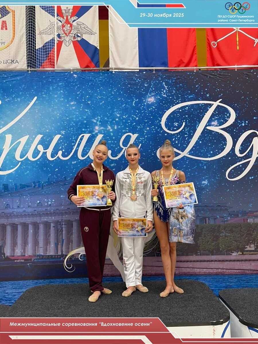🏅МЕДАЛИ В КОПИЛКУ🏅 💫В минувшие выходные наши спортсменки покорили судей грацией, артистизмом и мастерством исполнения индивидуальных программ многоборья и группового упражнения, завоевав медали на межмуниципальных соревнованиях по художественной гимнастике ✨«Вдохновение осени»✨ По программе МС: 🥇1 место - Зайцева Злата 🥈2 место - Крутских Анжела По программе КМС: 🥈2 место - Дольская Полина 💫Команда девочек 2016 года рождения заняла второе место в групповом упражнении: 🥈Бравер Каролина, 🥈Сое Кира, 🥈Щербатова София, 🥈Ткаченко Виктория, 🥈Еремеева Вероника. 👏Поздравляем наших спортсменок и тренеров Зелинскую Марину Владимировну, Сергиенко Наталью Борисовну, Кулакову Галину Викторовну и Прокофьеву Ольгу Валериевну с успешными выступлениями и заслуженными наградами! 💐🥇🥈🥈🥈 #художественнаягимнастика #МыСпортивныйПетербург #ГБУДОСШОРПушкинскогорайонаСанктПетербурга