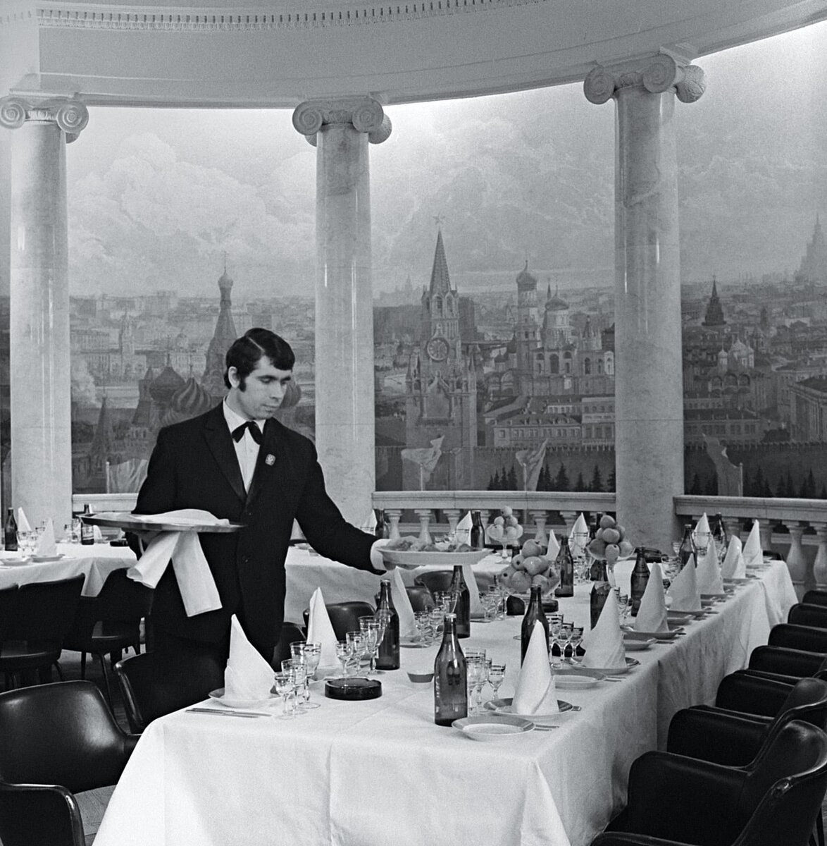 Представьте: белоснежная скатерть, хрустальные бокалы, официант в бабочке. Счёт — 150 рублей. Средняя зарплата — те же 150. Советский ресторан был не просто местом для еды — это был символ статуса, недоступная роскошь для большинства. Как же устроен был этот мир за бархатными занавесками? Два мира одной страны В СССР существовало два типа ресторанов — для элиты и для простых граждан. Граница была невидимой, но непреодолимой. Рестораны категории «Люкс» находились в центре Москвы и Ленинграда. «Арагви», «Прага», «Националь» — одни названия звучали как пропуск в другую жизнь. Здесь ужинала партийная номенклатура, артисты, писатели. Цены кусались: салат оливье — 3 рубля, шашлык — 5 рублей, бутылка коньяка — 15 рублей. Для сравнения: инженер получал 120-150 рублей в месяц. Один поход в ресторан мог обойтись в треть зарплаты. Рестораны попроще располагались в спальных районах. Ассортимент скромнее, цены ниже — но всё равно недоступно для большинства. Сюда заходили по особым случаям: свадьб