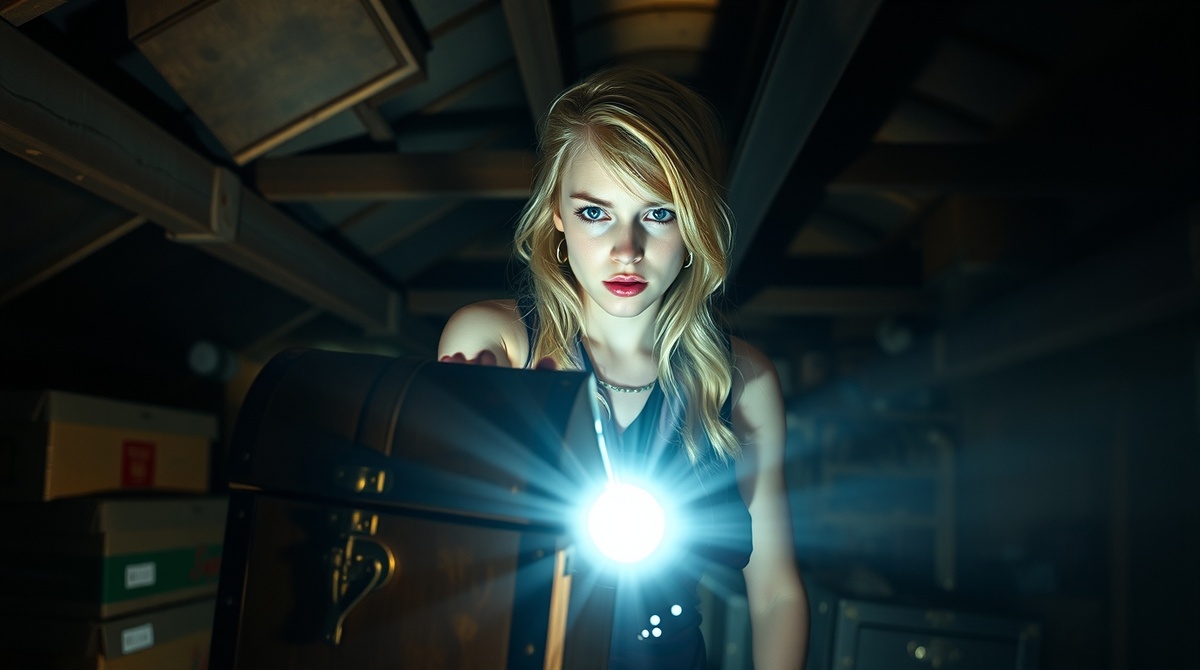 Лена стояла, прижимая ладони к груди, пытаясь снова вдохнуть. Свет фонарика дрожал в её руках, плясал по стенам, отражаясь в стекле старых рам. Она заставила себя шагнуть к сундуку — осторожно, будто он мог укусить.