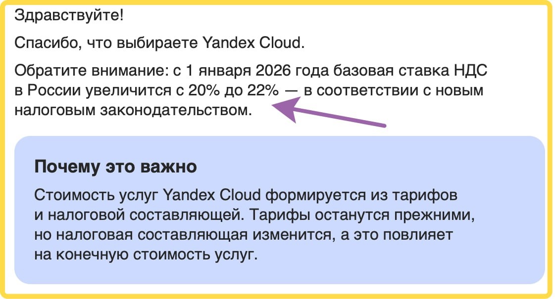 Пошли письма "счастья" уже. Отмечу, что рост не 2%, а 10% (но 2 п.п.). Кстати, ребята из Яндекса умно сделали - есть тариф + налог и это разные сущности. Мы, к сожалению, до такого не додумались :) Русский ИТ бизнес
