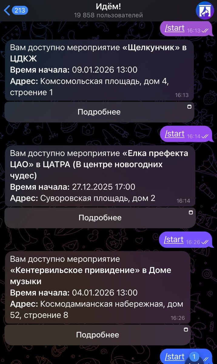 🔥 Бесплатные билеты на Ёлки от Управы и подарки от Единой России для многодетных Многодетные, вы тут? Поднимите ручку 👋 Если у вас есть знакомые многодетные, обязательно поделитесь с ними этой информацией. Не все знают о такой шикарной возможности. 🎄Ёлки от Управы🎄 Наша Управа анонсировала старт заявок на новогодние Ёлки для многодетных. В этом году заявки принимаются по новым правилам: Префектура округа выложила Пост в своем ТГ-канале, где можно оставить заявку на мероприятие через чат-бот «Идём!». Если вы из ЦАО, успевайте оформить заявку ЗДЕСЬ. В этом году дают билеты на Ёлки в ЦАТРА, Дом музыки, Тодес и Щелкунчика в ЦДКЖ. Если вы из другого округа, поищите канал своей префектуры. 🎁 Новогодняя акция «вЕРа в Чудо» от Единой России ЕР запустила традиционную новогоднюю акцию «вЕРа в чудо», которая уже не один год радует юных жителей сердца Москвы. Акция создана для семей социальных категорий, проживающих в Центральном округе. ❄️ Заявки принимаются до 15 декабря по номе