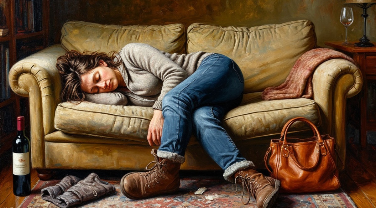 Она осторожно прошла в спальню матери. Мать, как обычно, спала в пьяном угаре, не расстелив постель и не переодевшись. Комната была пропитана приторными духами вперемешку с перегаром. Дамская сумочка, сапоги и куртка валялись на полу в хаотичном порядке. Видимо мама ночью, на ходу, их снимала.