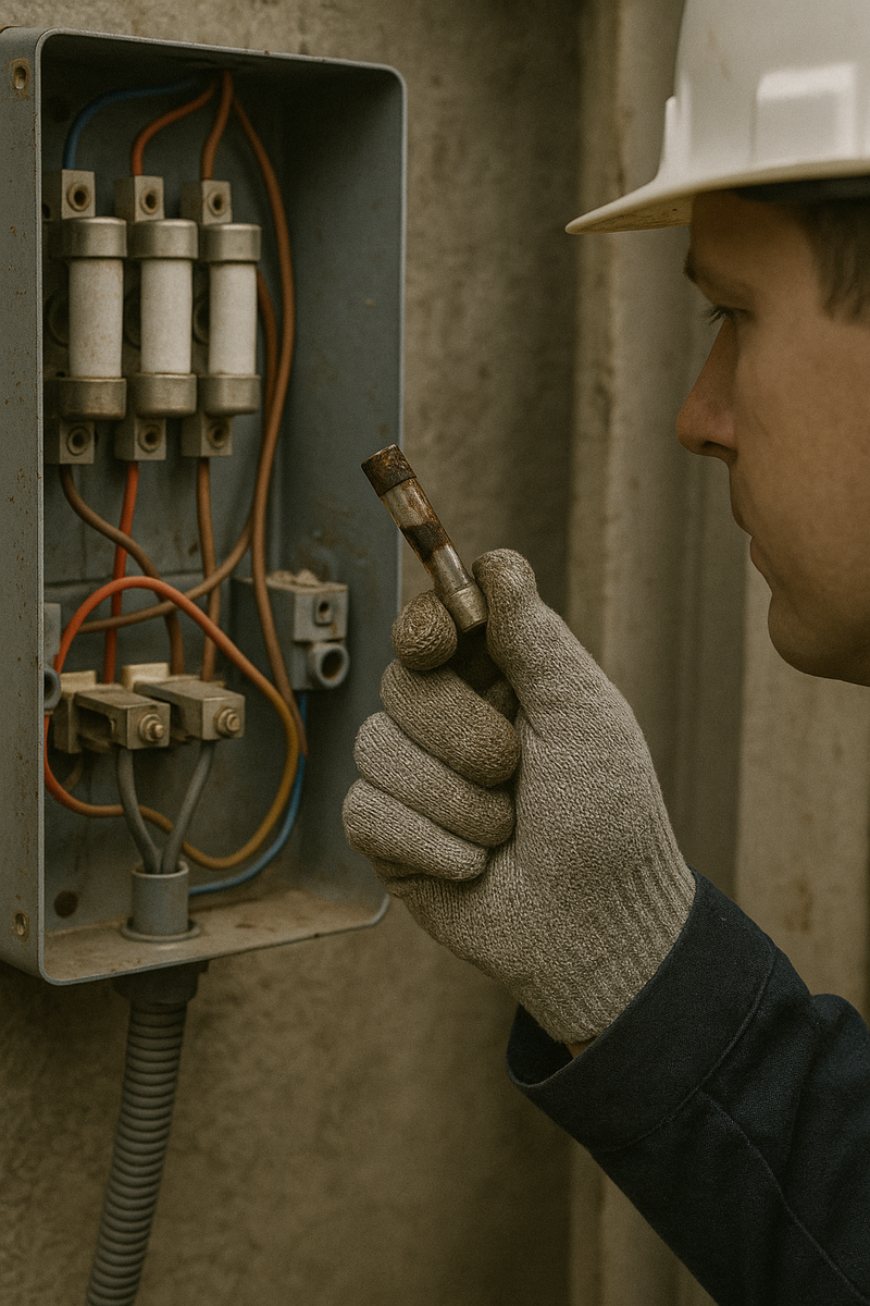 Частые источники КЗ: повреждение изоляции, пробой фазного проводника на «ноль» или «землю», попадание влаги, механические повреждения кабелей, ошибки монтажа — всё это должно быть проверено. 2. Перегрузка цепи (длительное превышение номинального тока) Если нагрузка цепи превышает рассчитанный ток — проводники и плавкая вставка постоянно перегреваются. Плавкий элемент нагревается, расплавляется — предохранитель «сгорает».