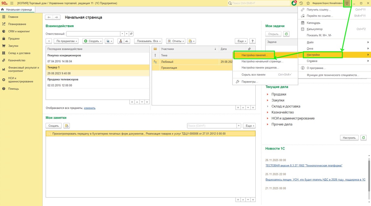 🚀 Начало работы в Управление торговлей 11.5 1. Настройка параметров · НСИ и администрирование - Настройка НСИ и разделов - включите нужные функции: · Заказы клиентов/поставщиков · Количество складов и организаций и т.д 2. Персонализация интерфейса Нажмите правый верхний угол (кнопка с двумя полосами и стрелкой вниз) - Настройки: · Панели - перетащите нужные на рабочую область · Начальная страница - добавьте часто используемые отчеты · Панель разделов - настройте видимость 3. Заполнение основных данных Организация: · Вид, наименование, ИНН/КПП · Префикс для документов (например, «УТ») · Система налогообложения (ОСН/УСН) · Метод оценки товаров (ФИФО/средняя) Лица с правом подписи: · Укажите руководителя, бухгалтера · Заполните ФИО, должность, период действия Склад: · Тип (оптовый/розничный) · Ответственный, подразделение · Учетный вид цен Подробнее в нашей инструкции: https://clck.ru/3QcMh9 ✅ Готово! База настроена для начала работы. Читайте Scloud в телеграм-канале: https://t.me/