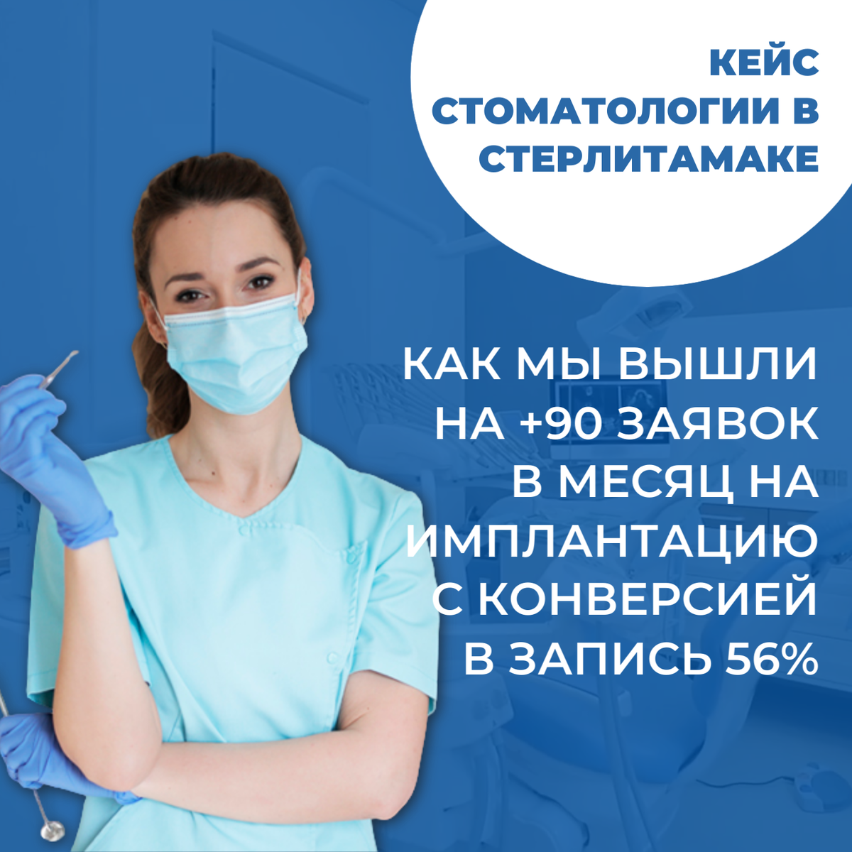 Ключевая услуга клиники — дентальная имплантация. На момент нашего прихода клиника ежемесячно принимала около 30 пациентов по этому направлению. Задача была амбициозной: увеличить этот показатель до 60 и более пациентов. При стандартной конверсии в 50% это означало необходимость генерировать не менее 90-100 заявок ежемесячно.