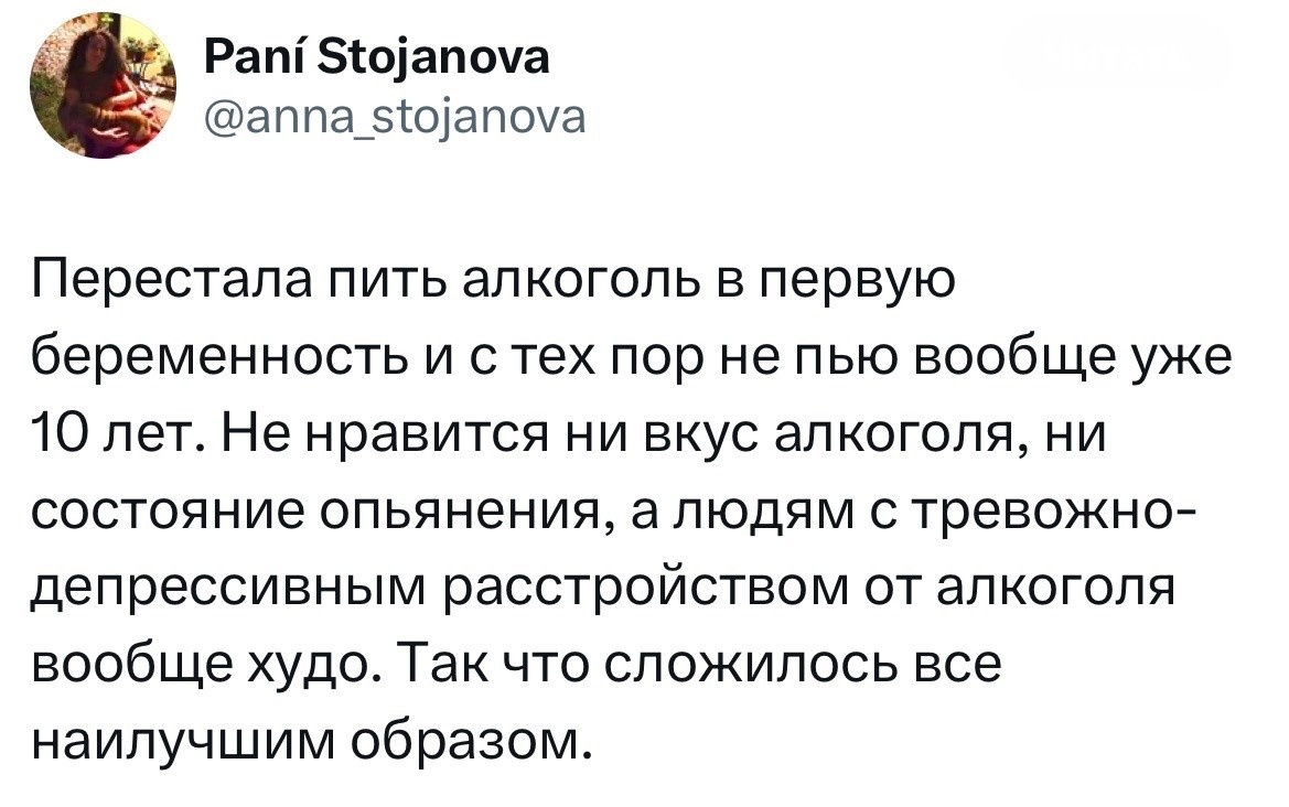 У всех какие-то жизненные обстоятельства, ситации. Все перекладывают свои проблемы на алкоголь. Есть я, а есть он. Поэтому это все он виноват. Это он меня соблазнил, это он меня заставил пьяным сесть за руль и устроить джихад такси. Хотя у человека были мысли не о том, что он подвергает опасности жизни другого пешехода, а о том, лишь бы его не спалили, потому что понятно, что чужая жизнь не имеет значения. По факту мы имеем трех малолетних интеллектуалов, которые на алкоголь перекладывают все свои проблемы. Это он все виноват, а они все белые и пушистые у всех обстоятельств, у всех ситуаций. А я так и не понимаю, зачем бросил пить)) Детей нет, семьи нет, здоровья нет и не светит. То есть вещей, ради которых люди бросают пить. Просто провожу опыт над собой, как это жить без бухла, как меняются мысли, желания. Почему бросил тогда? Оглянулся назад и увидел, что последний раз не пил, больше месяца, в армии, 20 лет назад. Вроде не конченный алкаш, но как-то меня это ошарашило и решил з
