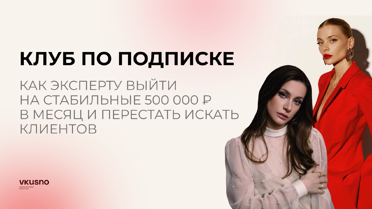 У каждого востребованного эксперта наступает момент, когда продавать свое время становится невыгодно. Личные консультации имеют потолок: в сутках ограниченное количество часов. Мы в агентстве VKUSNO видим решение в переходе на модель рекуррентных платежей — клуб по подписке. Это трансформация хаотичных разовых продаж в прогнозируемый ежемесячный поток выручки и спокойствие собственника. Давайте посчитаем экономику, разберем правила запуска и посмотрим, чем наполнять такой продукт. Математика свободы Сравним две бизнес-модели. Модель 1. Личные консультации. Допустим, ваша сессия стоит внушительные 100 000 рублей. Чтобы заработать, нужно найти клиента, прогреть его и провести 4 часа плотной работы. В следующем месяце этот процесс начинается с нуля. Модель 2. Клуб по подписке. Вы создаете закрытое сообщество с абонентской платой, например, 5 000 рублей в месяц. Ваша цель — собрать всего 100 лояльных участников. Итог: те же 500 000 рублей ежемесячно. Но теперь вы тратите время не на беск