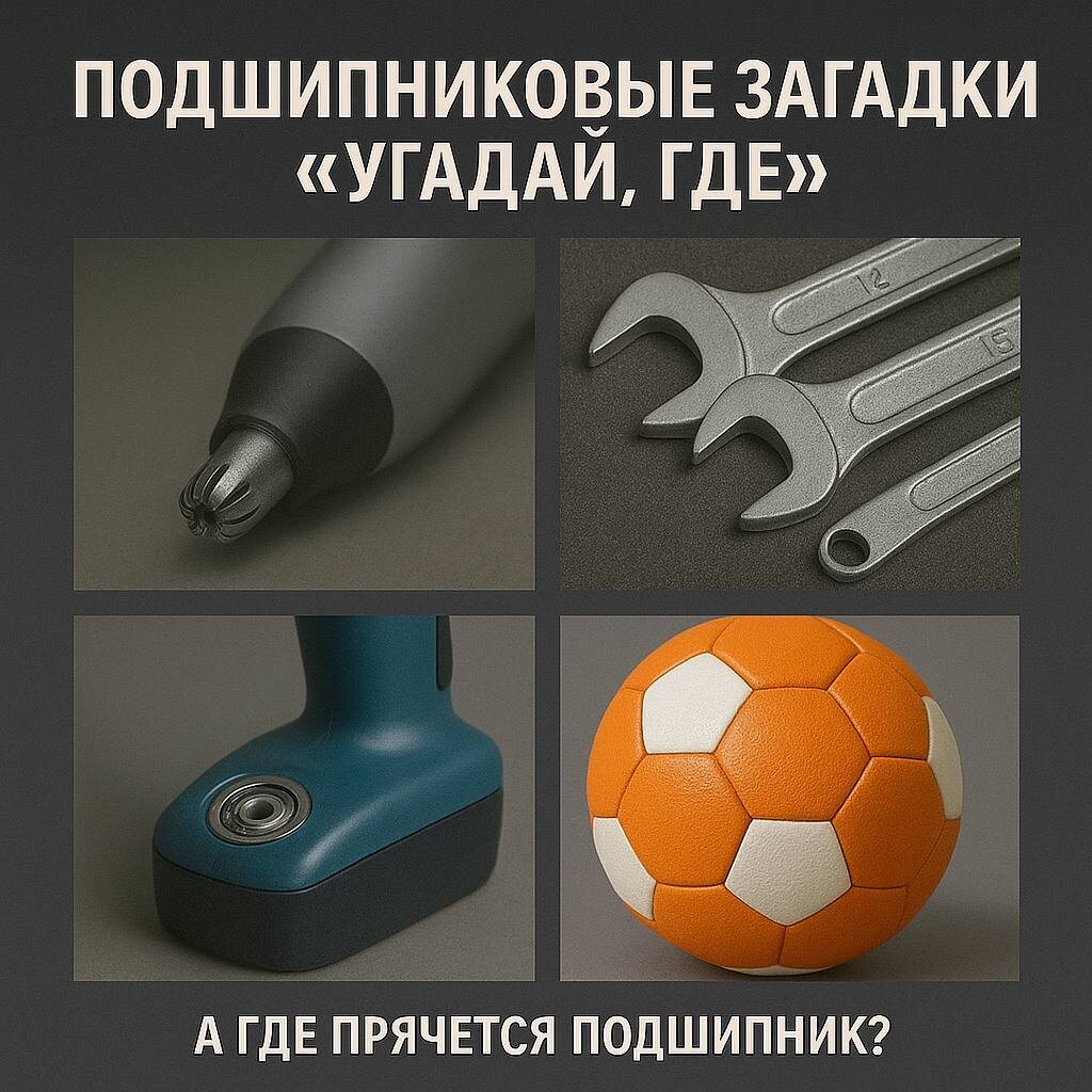 Внимание, внимание! На этих четырёх изображениях спрятан коварный подшипник. Он мастерски замаскировался, и его нужно обнаружить как можно быстрее! Тому, кто первым его выследит, полагается звание "Настоящий детектив"!🕵️♂️ 😱 Итак, вот четыре подозреваемых, и один из них – хранилище подшипника: 1. Триммер для носа 2. Гаечные ключи 3. Шуруповерт 4. Футбольный мяч 🙈Проявите свою внимательность и инженерную смекалку! Где же подшипник решил спрятаться на этот раз? Напишите в комментариях, в каком предмете, по вашему мнению, скрывается подшипник! Ваш верный ответ может принести вам победу!👇
