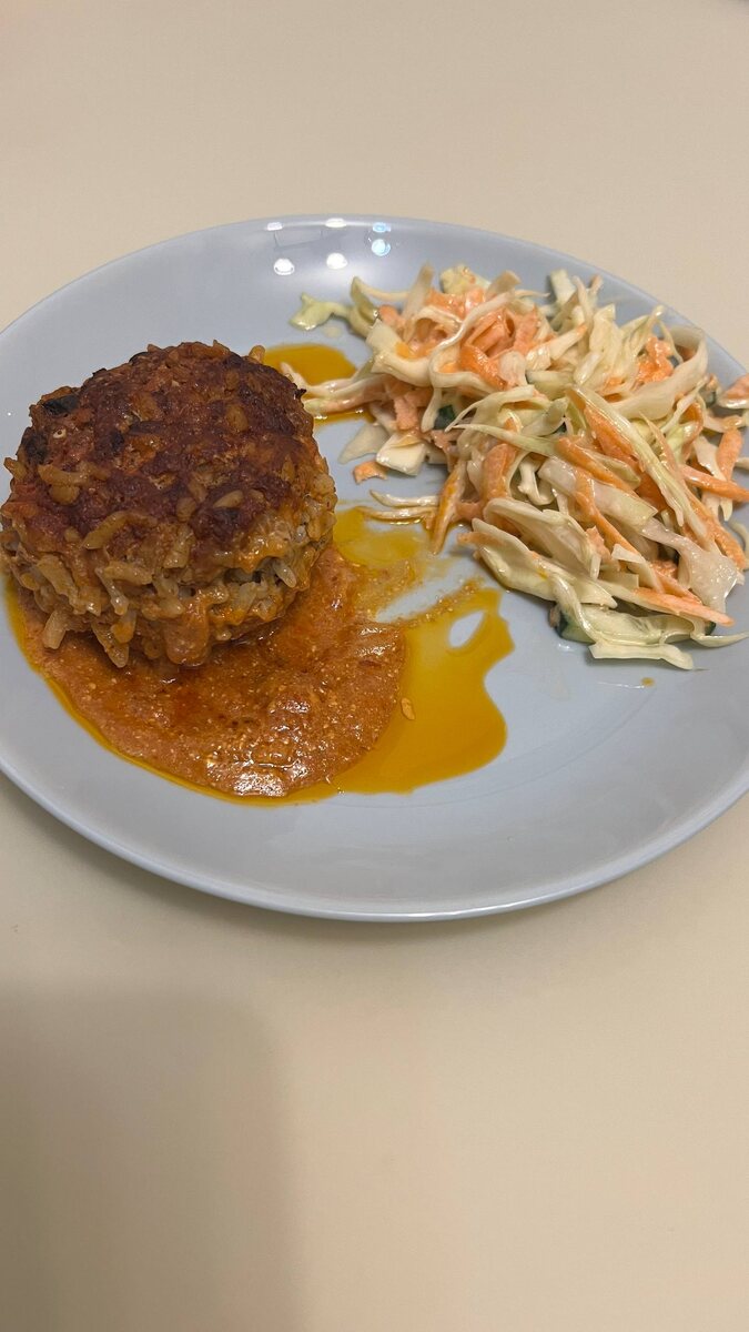 Мелко режем лук, добавляем в готовый фарш. Солим, добавляем приправы по вкусу (у меня перец черный, паприка, чеснок). Рис промываем и добавляем к фаршу. Тщательно перемешиваем. Делаем крупные шарики. Обжариваем шарики из фарша с 2 сторон на сковороде с растительным маслом. Добавляем соус (сметана+томатная паста+соль+вода). Тушим под крышкой на среднем огне до готовности. Примерные пропорции: на 500 гр фарша - 100 гр риса. Обязательно скажите детям как называется это блюдо, тогда есть будет интереснее☺️