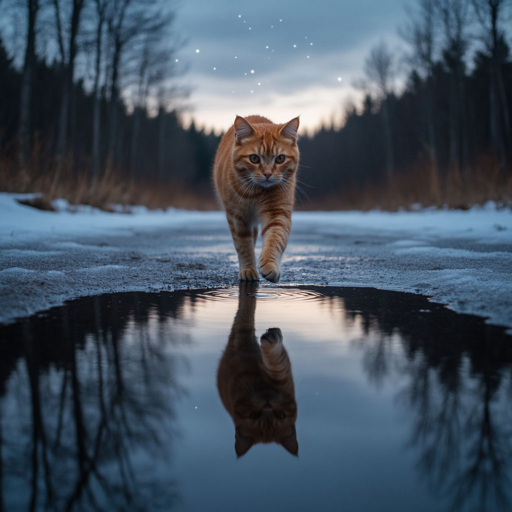 Крещенские морозы сковывают землю, превращая лужи в темные, зеркальные окна. И именно к ним, будто по зову, выходит ваш кот. Он не просто гуляет. Он подходит к ледяному кругу и замирает, как будто видит в нем не свое отражение, а нечто большее. В этот момент лед под его лапами перестает быть водой. Он становится хрустальным шаром, а кот — вашим личным провидцем. Давайте расшифруем его послания. Почему именно лед? В Крещение вода обнуляет свою память и становится чистым листом. А лед — это остановленное, зафиксированное состояние этой чистоты. Он становится экраном, на который кот проецирует информацию из будущего, считывая ее через вибрации и узоры. ТОЛКОВАНИЕ ЗНАКОВ: ЧТО ВАМ ПРЕДСКАЗЫВАЕТ КОТ 1. ПЕРЕШАГНУЛ С УВЕРЕННОСТЬЮ Что это значит: Кот, не задумываясь, переступает или перепрыгивает лужу. Лед выдержал, не треснул.