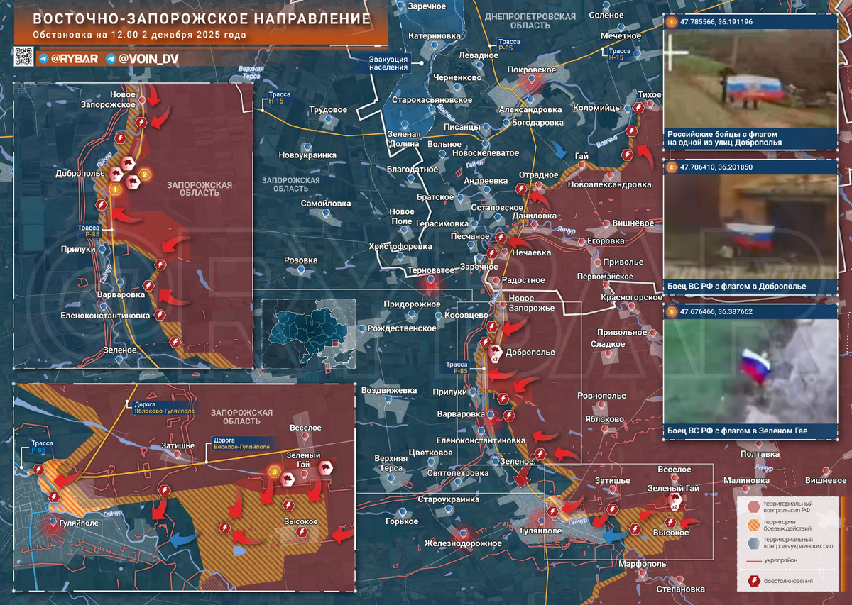 🔶Пока внимание на Восточно-Запорожском направлении приковано к Гуляйполю, подразделения группировки «Восток» заняли еще несколько населенных пунктов. Продвижение идет широким фронтом, ВСУ теряют позиции к востоку от Гайчура. 🔸Где отброшен противник? 🔸Недавно Владимиру Путину доложили о начале городских боев и успехах российских войск у Гуляйполя. Первоначальный «зацеп» достигнут две недели назад и сейчас противник теряет дом за домом. 🔸В полях севернее гвардейцы 37 омсбр освободили Доброполье и близки к заходу в Варваровку. Оба этих населенных пункта находятся на восточном берегу реки Гайчур, на западном противником оборудована линия укреплений. 🔸Если ВСУ ее не удержут, то можно будет констатировать еще один широкий прорыв линии обороны. Поэтому противник пытается укрепить рубеж Рождественское — Воздвижевка. Хотя приближением линии фронта и ростом числа ударов БЛА далеко не факт, что ему хватит инженерной техники и рабочих рук. 🔸К востоку от Гуляйполя штурмовики 38 гвардейской о