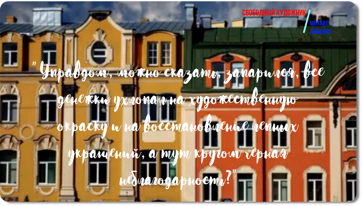 Аудио Удивительная способность Зощенко превращать повседневные житейские ситуации в сатиру и глубокие размышления. В этой короткой, но насыщенной юмором зарисовке он мастерски показывает, как маленькие бытовые трагедии и радости могут стать отражением всей жизни, а его ироничный взгляд - напоминанием о том, что даже самые обычные будни наполнены смыслом и достоинством. В начале рассказа автор описывает: «Сейчас красят здания. Украшают. Балконы синенькою краской разрисовывают. Улицы от этого принарядились. Любо-дорого ходить». Эти слова вызывают не только улыбку, но и теплое чувство - ведь даже самый простой ремонт превращается в праздник, если его делает мастер с душой. Зощенко тут словно говорит: «Вот и я, - кажется, - дома свои крашу, и мне приятно, что наши стены сияют новизной». Он словно чувствует, как важно украшать мир вокруг себя - хоть это дом, хоть улица. Но всё не так безоблачно! Вся эта красота стоит немалых денег: «Тыщу целковых на окраску ухлопали», - и тут же добавляет,