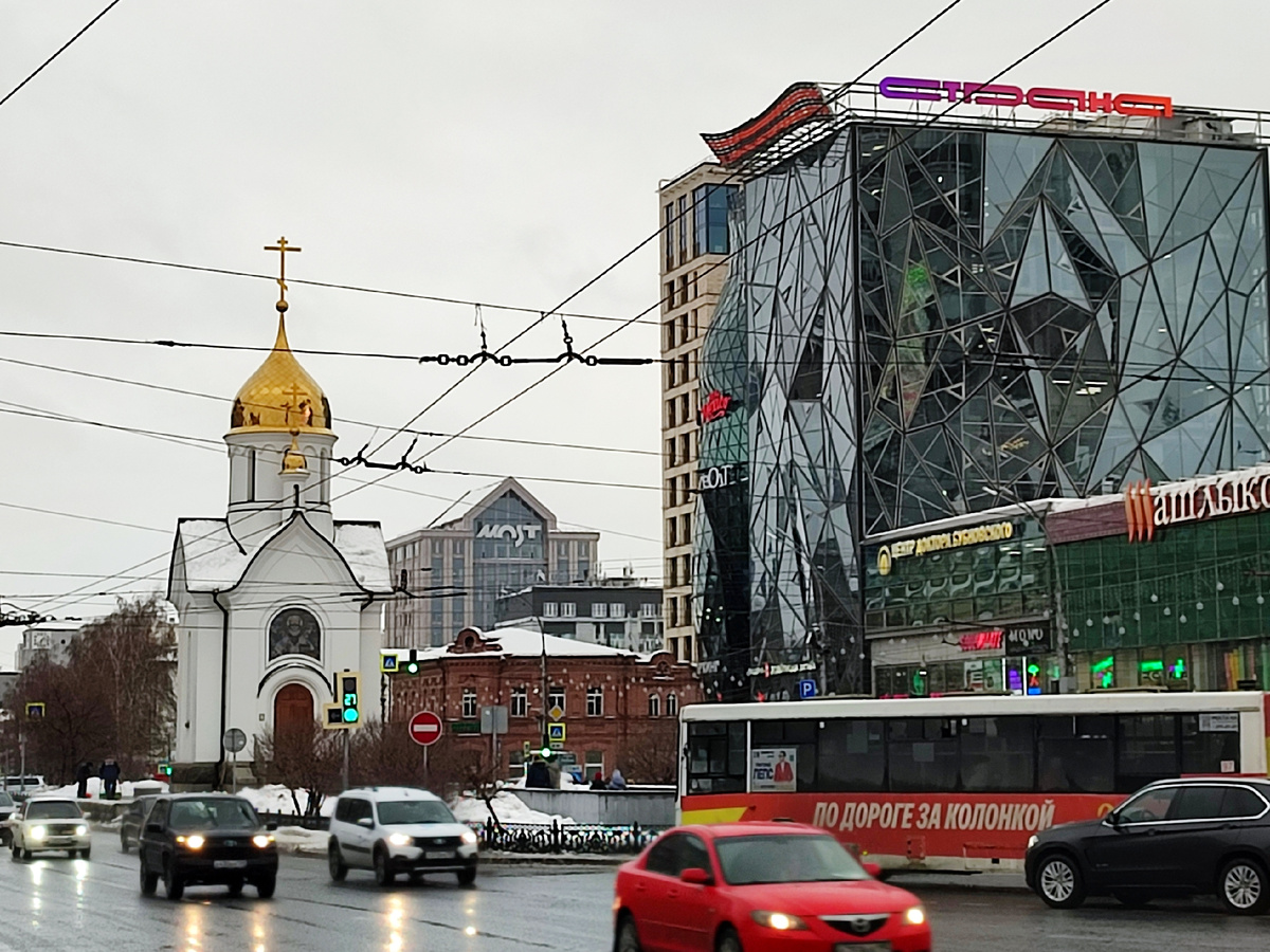 "И в третий раз закинул старик невод..." Ну, я тоже хочу золотую рыбку! Или что там вместо нее сегодня будет? И зашла я в третий магазин! А все равно на остановку шла, после посещения двух отделений "Гавани веков", а магазинчик под названием "Че" рядом был. Так то проверяла его недавно, но а вдруг? Ну и пока иду, немного городских зарисовок, из самого центрального центра Новосибирска! Дело было не сегодня, а 26-го ноября, хмуро и сыро. Потом были морозные морозы - в выходные до 30-ти. А сегодня опять +2. Организм уже устал реагировать, считай, приспособился 😄 А вот думаете, что это только центр Новосибирска? А вот и нет! Это Центр Державы! Какой именно, уточнять не будем, мнения расходятся. Но городская легенда существует. А, главное, наша шоколадная фабрика давно выпускает конфеты с видом этой часовни и таким названием. Можно считать документом! А версия такая. Раньше, при царе часовня стояла здесь же на Красном проспекте, но чуть ближе. А когда ее воссоздали, то не посреди дороги