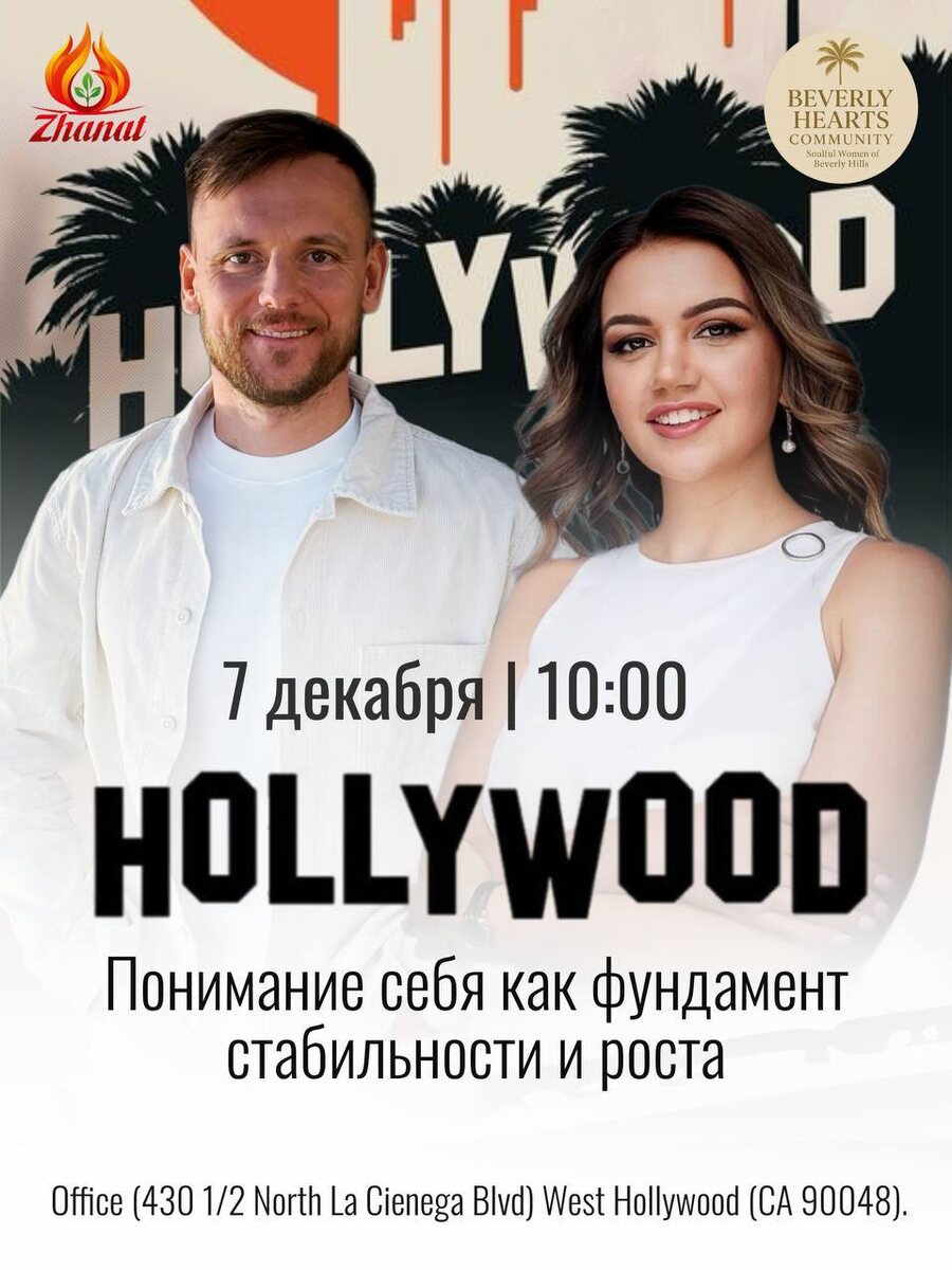 МАСТЕР-КЛАСС В ЛОС-АНДЖЕЛЕСЕ ⚡️ ГОЛЛИВУД 📍 7 декабря | 10:00 Office (430 1/2 North La Cienega Blvd) West Hollywood (CA 90048). Мастер-класс пройдет в формате открытых дверей женского сообщества Beverly Hearts Community — пространства, которое объединяет женщин, создающих, ведущих и усиливающих свои проекты в США. 🎤 Спикеры мероприятия: Сергей Теплых — СЕО Syucai Training Institute LLC, коуч с опытом 15.000+ консультаций Кристина Шалудкина — создательница женского комьюнити в Беверли-Хиллз Beverly Hearts Community. На встрече разберём ключевые темы: ✅ Цифровая психология Syucai: как объективно понимать себя и свои состояния ✅ Дисциплина как фундамент личности и бизнеса ✅ Управление энергией: что влияет на эффективность в работе и жизни ✅ 9 компетенций: как видеть свои сильные стороны и зону роста ✅ Как выстроить структуру дня и не терять фокус РЕГИСТРАЦИЯ ОБЯЗАТЕЛЬНА! 📲 +7 987 308 2225 Анна