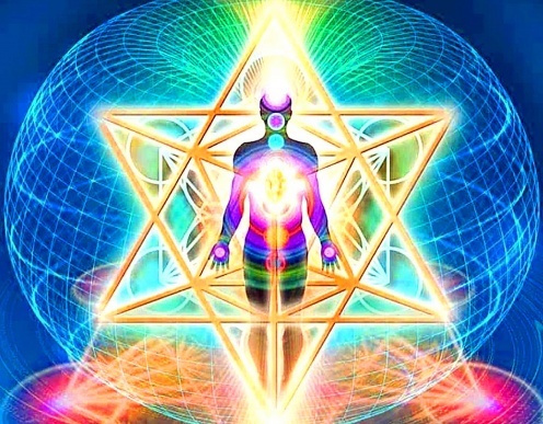 Меркаба - это некий усилитель энергий, который вы можете использовать для своих целей, также его можно использовать для передвижения, телепортации, перемещения во времени, квантовых скачков, быстрого набора энергии, исцеления, продвижения намерения, материализации предметов и т.д. Лично по моим ощущениям, использование меркабы приводит почти всегда к более лёгкому и простому выходу из тела во время сна. Сразу скажу, что ПРАКТИКА настолько мощная, что может вызвать целительский кризис даже для самых продвинутых энергопрактиков. Принцип работы очень прост: представляем тетраэдр, который опускается сверху на вас, вы теперь находитесь в нём, широкая часть внизу в районе колен, узкая наверху. Далее, представьте себе тетраэдр, который поднимается снизу вверх широкой частью у вашей груди, узкой снизу, должно быть примерно как на картинке. Верхний тетраэдр, назовём его "космический", закручивается против часовой стрелки, нижний тетраэдр, назовём его "земной", закручивается, соответственно, по