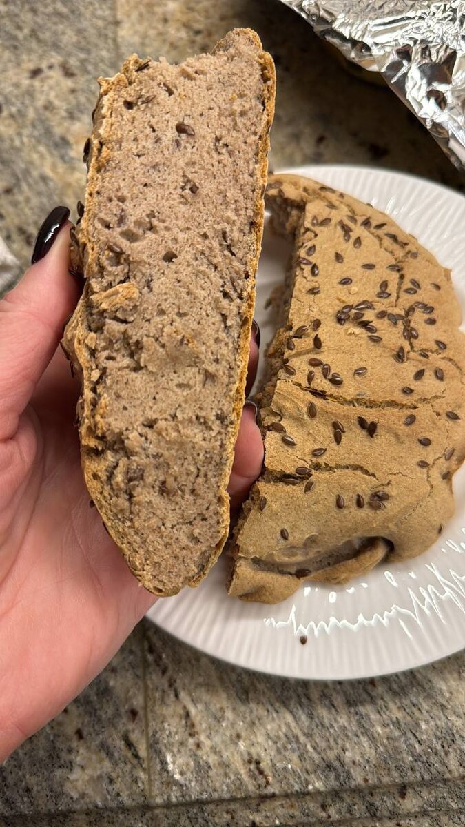 Рецепт безглютенового хлеба Гречневая мука - 250 г Сода - 0,5 ч.л. Яблочный уксус - 1 ст.л. Куриное яйцо - 1 шт. Соль - 0,5 ч.л. Вода - 125-150 мл • Куриное яйцо смешайте с солью. • Всыпьте гречневую муку, соду и влейте яблочный уксус. • Влейте воду комнатной температуры. • Перемешайте тесто, оно должно получиться "как мокрый песок". Собирать его в комок не нужно, так вы забьете его мукой и хлеб получится очень черствым. • Форму выстелите пергаментом, выложите тесто и разровняйте его. Выпекайте бездрожжевой гречневый хлеб в духовке, заранее разогретой до 180°C, в течение 40-50 минут. Готовность проверьте деревянной шпажкой - она из середины хлеба должна выйти абсолютно сухой. • Достаньте готовый хлеб, дайте ему полностью остыть на решетке, прикрыв чистым полотенцем. • Затем безглютеновый хлеб из гречневой муки можно нарезать и подавать с чем любите. Приятного аппетита ❤️