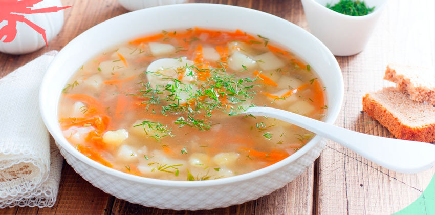 водой. Доводим до кипения на среднем огне. Морковь трем на крупной тёрке. Лук измельчаем. Картошку нарезаем кусочками. Закидываем овощи в закипевший суп. Через 10 минут засыпаем в уху промытый рис. Посолим, добавляем