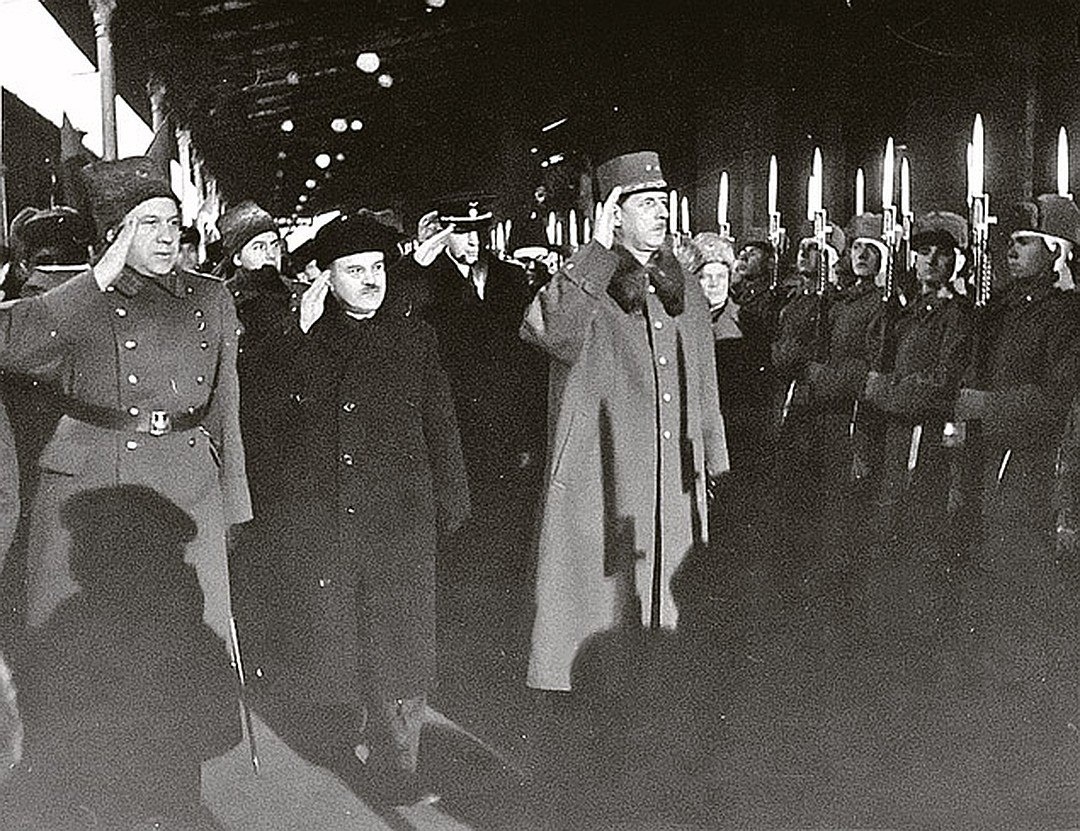1944 год стал ключевым моментом в восстановлении связей между СССР и Францией. 2 декабря в Москву прибыл глава Временного правительства генерал Шарль де Голль, сопровождаемый министром иностранных дел Жоржем Бидо. Его визит имел не только дипломатический, но и символический характер: Франция, пережившая оккупацию и сопротивление, возвращалась в число великих держав и торопилась закрепить своё место в послевоенном мире. 10 декабря, после переговоров с руководством советского правительства, был подписан Советско-французский договор о союзе и взаимной помощи. Он закреплял общее стремление довести войну до полного разгрома нацизма и становился важным шагом на пути к послевоенному сотрудничеству. В условиях, когда исход войны уже был предрешён, договор подчеркивал: судьба Европы будет определяться усилиями тех, кто продолжал борьбу, и Франция очень хотела быть среди них.