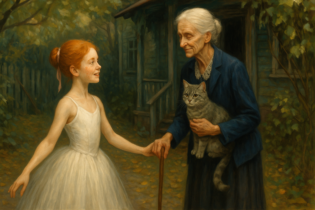 Марфа делает первый па, второй. Руки рисуют в воздухе знакомые с детства дуги, ноги мягко касаются пола и тут же отрываются – будто на него жалко наступать. В каждом движении – и кошачья гибкость, и строгая школа, и музыка, которая теперь живёт в ней самой.