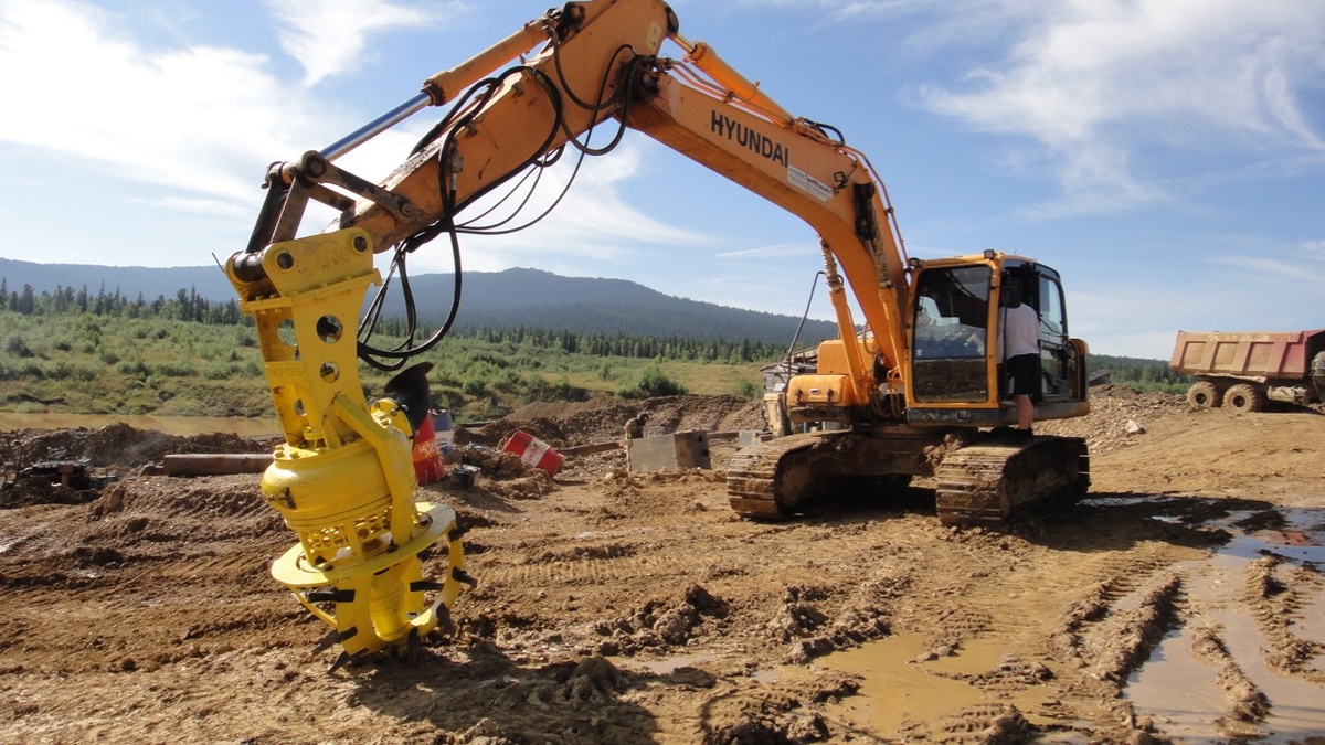 - Гидромолоты — применяются для разрушения бетона, асфальта, мерзлого грунта, вскрытия скального основания. Необходимы при демонтаже и прокладке коммуникаций.