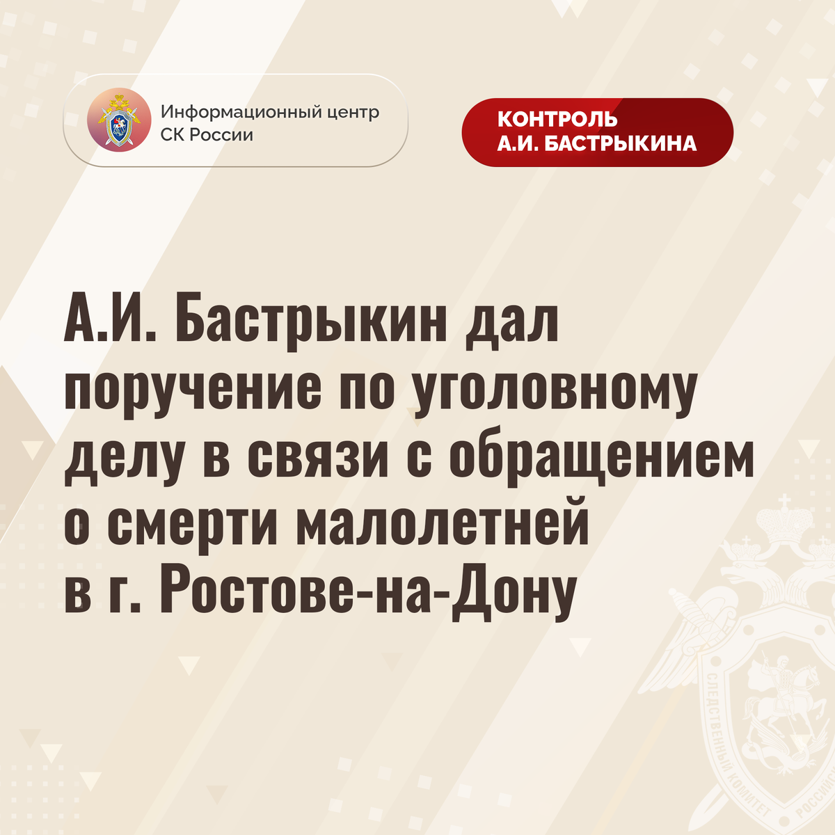 А.И. Бастрыкин дал поручение по уголовному делу в связи с обращением о смерти малолетней в г. Ростове-на-Дону