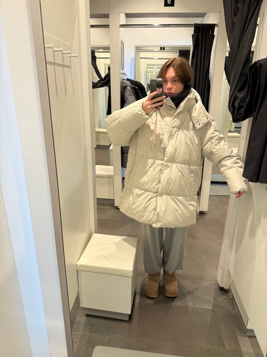 Сегодня примеряла пуховики из Ostin (часть 2) - Черный и Кремовый, 6999 Длина хорошая, высокий ворот и красиво сделан капюшон На мне, черный - M, кремовый - XL (единственный остался) Заказала себе померить кремовый в размере L Оказывается у меня были бонусы, и со скидкой вышло всего 4900❗️ - Черный, 8999 (есть в цвете слоновая кость) Нравится форма ворота, но нет капюшона Есть кулиска внутри, можно регулировать объем в талии На мне размер M, но я бы примерила побольше Приглядела еще такую модель 10999, С натуральным утеплителем, но к сожалению, в наличии не было
