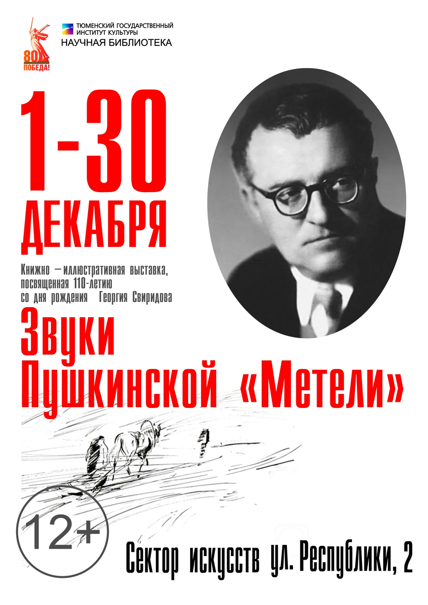 1 декабря в секторе искусств научной библиотеки ТГИК открылась выставка, приуроченная к 110-летию великого советского композитора Г. В. Свиридова. Музыку Георгия Свиридова знают, любят жители России и зарубежья. Его композиции отличаются оригинальностью, музыковеды считают, что в них мало нот и много музыки. Творчество выходца из Центральной России всегда отличалось неразрывной связью с местными традициями. Главное в творчестве Свиридова – это вокальная музыка (песни, романсы, вокальные циклы, кантаты, оратории, хоровые произведения). Здесь соединились его удивительное чувство стиха, глубина постижения поэзии и богатое мелодическое дарование. На выставке представлены произведения Георгия Васильевича (два тома из Полного собрания сочинений), его романсы, хоровые, камерные сочинения и, конечно же, музыкальные иллюстрации к повести А.С. Пушкина «Метель». В экспозицию выставки включены статьи из периодических изданий, посвященные жизни и творчеству композитора, в том числе из новых пост