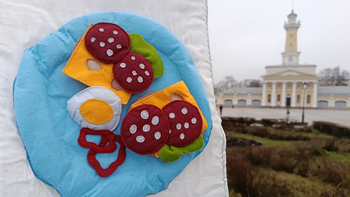 Лоскутно-фетровые бутерброды с яишенкой на площади-сковородке, красивейшие здания Костромы фоном – красота!