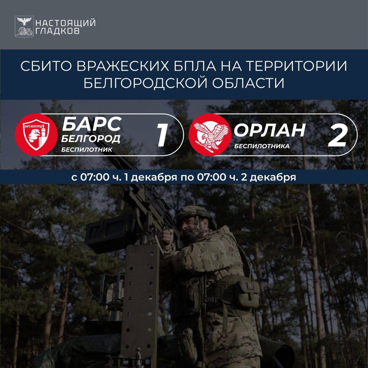 ⚡️Подразделения «БАРС-Белгород» и «Орлан» ликвидировали 3 БПЛА над Белгородской областью за прошедшие сутки