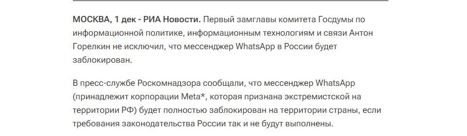 WhatsAp — принадлежит компании Meta, признанной экстремистской и запрещенной в РФ
