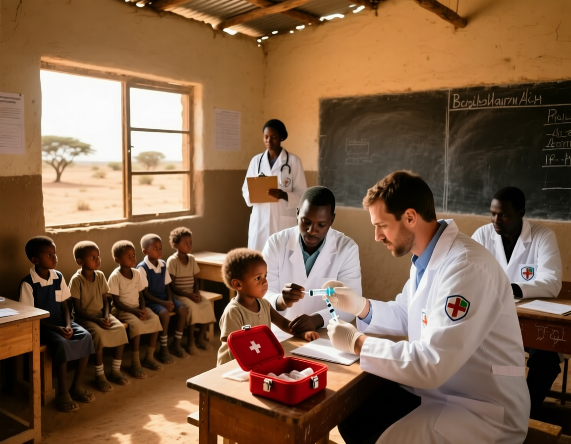 Хадиджа показала себя великолепным администратором в этих сложных полевых условиях. Ее тихий, но твердый и отчетливый голос, звучащий то на местном диалекте, то на ломаном русском, а также безупречная организация всего процесса стали тем ключом, который не позволил хаосу и панике захлестнуть их маленький медицинский пункт. Переводчица непрерывно координировала движение очереди у входа, мягко, но настойчиво регулируя наплыв людей, вместе с помощницами Зизи, Розалин и Жаклин следила за тем, чтобы на столах врачей не кончались шприцы, вата и препараты, и, что было, пожалуй, самым важным, она собственным спокойным видом и четкими указаниями поддерживала порядок и относительное спокойствие среди усталых и волнующихся ожидающих.