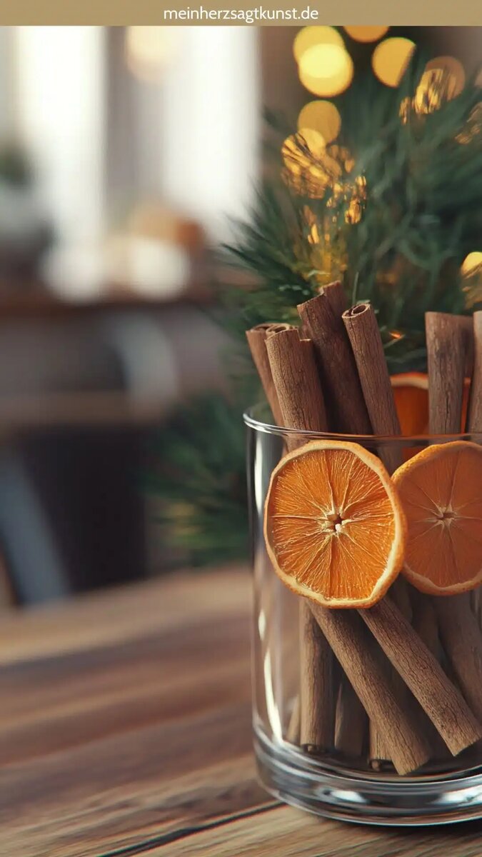 Чтобы аромат держался дольше, можно время от времени сбрызгивать палочки корицы и дольки апельсина небольшим количеством эфирного масла (например, корицы или апельсина). Пряный, сладкий аромат корицы и апельсина создаёт расслабляющую атмосферу и наполняет дом рождественским настроением.