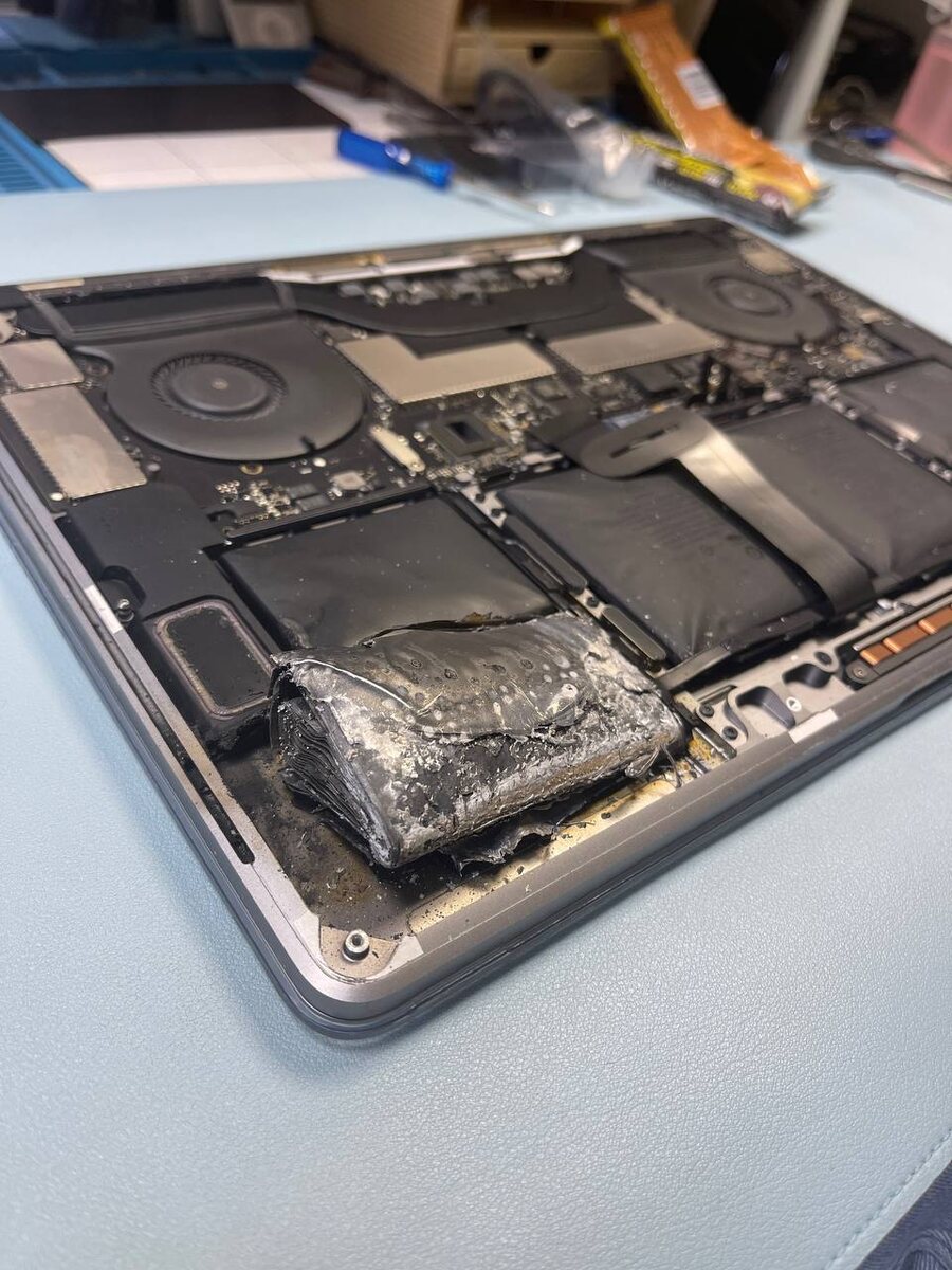 От времени аккумуляторные батареи могут вздуваться — химию не обманешь. Однако проблема возникает тогда, когда с этим ничего не делать. Дело в том, что визуально это может быть даже не заметно, а там внутри процессы уже пошли. Ячейка батареи раздувается, начинает оболочкой тереться о нижнюю крышку и в какой-то момент может протереть ее. Тут происходит контакт, тепловой удар и возгорание. К счастью, алюминиевый корпус Макбуков держит огонь внутри и не дает [обычно] распространиться дальше, но радости никому не приносит. Да и ноутбук далеко не всегда выживает после этого. Поэтому наша декабрьская акция: бесплатная чистка, профилактика и диагностика Макбуков. Что входит в работы: — вскрытие и чистка внутренних компонентов машины; — диагностика состояния аккумуляторной батареи с рекомендациями по обслуживанию; — если будет желание пользователя, то также проверка состояния операционной системы, ее чистка и рекомендации по обновлениям. Акция действует для всех, даже если вы никогда у на