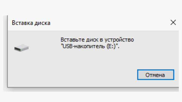 Или появляется окошко: «Вставьте диск в устройство…»
