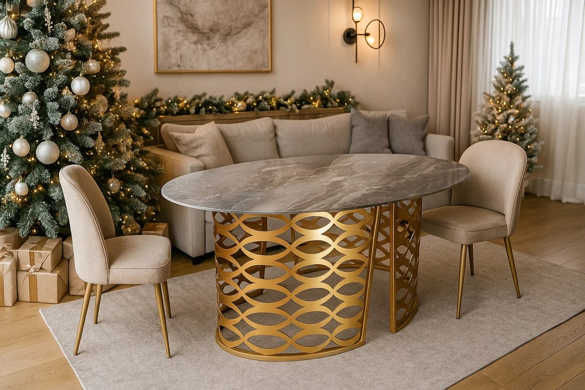 ✨ ДЕКАБРЬ — НАЧАЛО НОВОГОДНЕЙ СКАЗКИ ✨ Наступил декабрь — самое волшебное время года, когда сердце замирает в ожидании чуда, а дом наполняется ароматами мандаринов и предвкушением праздников. Каждая деталь важна, каждая мелочь способна создать уникальную атмосферу зимнего волшебства. 🏠 Стол — Начало Праздничного Торжества Начало встречи Нового Года — это оформление праздничного стола. Ведь именно вокруг него соберутся родные и любимые люди, чтобы разделить мгновения радости и веселья. Предлагаем вашему вниманию прекрасное решение, которое придаст вашему дому особую атмосферу и очарование: 🔥 Отточенная классика: Утоненный стол с мраморной поверхностью и золочеными деталями станет идеальным выбором для поклонников элегантности и высокого стиля. Ваш интерьер приобретёт неповторимый шарм, подчёркивая уникальность пространства и задавая настроение грядущего праздника. ❤️ Сделайте этот Новый Год особенно запоминающимся! Создайте уютную атмосферу, соберите близких людей и наслаждайтес