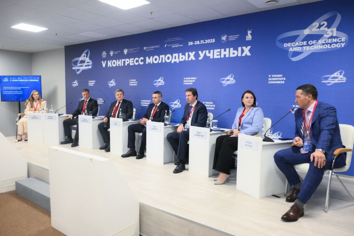 С 26 по 28 ноября 2025 года на площадке Научно-технологического университета «Сириус» в Сочи прошел V Конгресс молодых ученых «Энергия науки: от потенциала знаний к созиданию будущего». В Конгрессе приняли участие свыше 9000 участников, включая специалистов из почти 90 стран. 27 ноября в рамках Конгресса молодых ученых состоялась секция «Специализированное детское и лечебное питание: на пути к активному долголетию», организованная НИИ детского питания – филиалом ФГБУН «ФИЦ питания и биотехнологии». Модератором секции выступила Елена Симоненко – старший научный сотрудник НИИ детского питания, к.т.н. В секции приняли участие Сергей Сипягин – первый заместитель председателя комитета Государственной Думы Федерального Собрания Российской Федерации по науке и высшему образованию, Дмитрий Репников – председатель экспертного совета при комитете Государственной Думы по науке и высшему образованию по вопросам международного образовательного и научного сотрудничества и интеграции, Илья Орсик –