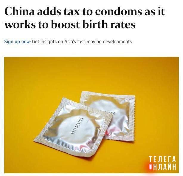 Идея для наших депутатов Китай вводит налог в размере 13% на презервативы, чтобы повысить уровень рождаемости. Политика «одна семья — один ребенок» в КНР окончательно все. 🚲 Подпишись на Телега Online