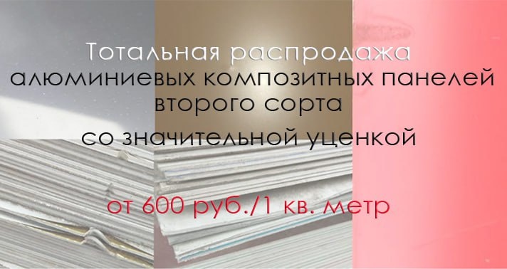 Тотальная распродажа алюминиевых композитных панелей второго сорта со значительной уценкой от 600 руб./1 кв