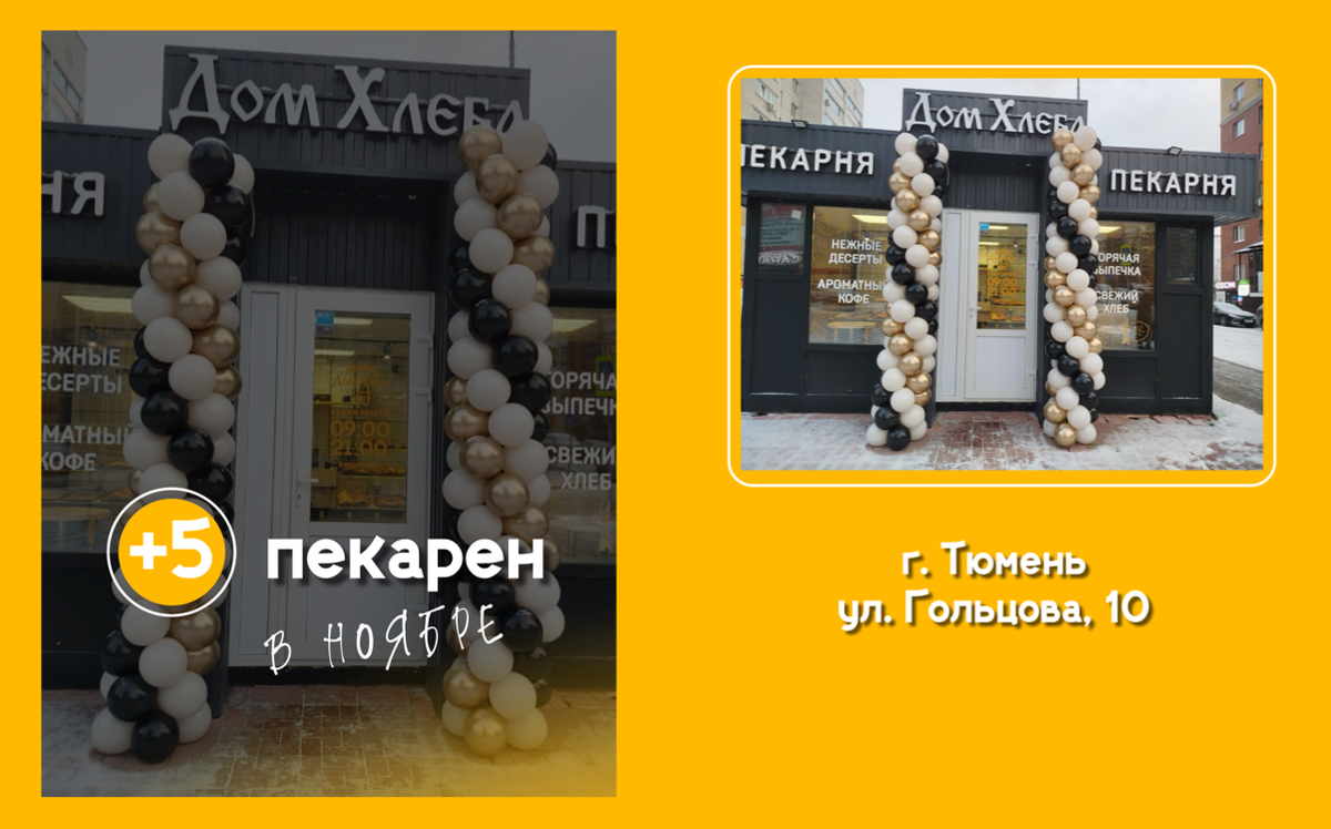 💛 С огромной радостью мы объявляем о расширении нашей дружной семьи «Дом Хлеба»! Приветствуем новых партнеров и поздравляем их с открытием новой пекарен!👏 Мы верим в ваш успех и желаем вам процветания и вкусных побед! 📍 г. Сорочинск, ул. Фурманова, 40 📍 г. Уфа ул. Кувыкина, д.15, кор.6 📍 г. Уфа ул. Цюрупы, д.102 📍 г. Тюмень ул. Гольцова, д.10 📍 Казахстан, г. Павлодар ул. Назарбаева, д.20 Приглашаем в нашу дружную семью «Дом Хлеба»! Подробнее о франшизе здесь