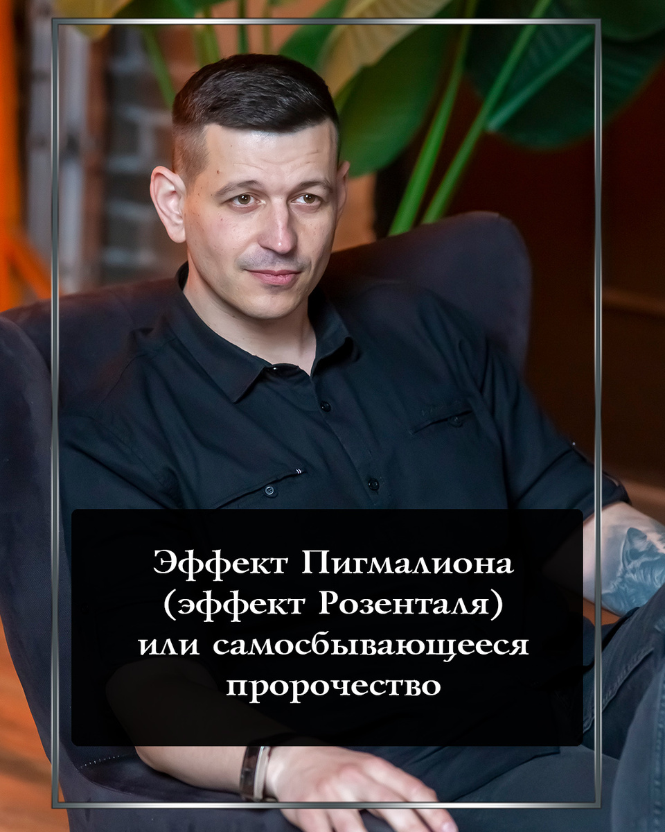 Эффект Пигмалиона (эффект Розенталя, самосбывающееся пророчество) — психологический феномен, при котором ожидания одного человека относительно поведения или результатов другого человека могут привести к тому, что это поведение или результаты реализуются. Название эффект получил из-за связи с древнегреческим мифом о скульпторе Пигмалионе, который влюбился в созданную им статую Галатеи. Пигмалион так сильно верил в её красоту и желал, чтобы она ожила, что богиня Афродита исполнила его желание, и статуя стала живой женщиной. Эксперимент Научное подтверждение эффекта получил в эксперименте психолога Роберта Розенталя: В обычной школе ученикам начальных классов предложили пройти тест на IQ. Учителям сообщили, что некоторые дети показали исключительно высокие результаты и от них стоит ждать «интеллектуального скачка». На самом деле этих «одарённых» учеников выбрали случайно. Год спустя результаты оказались поразительными: именно у этих детей показатели IQ выросли значительно заме