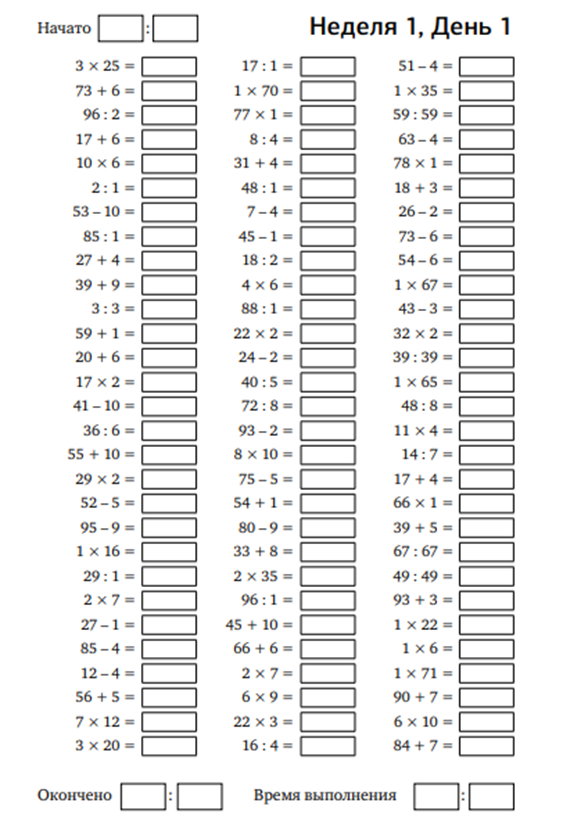 Выполняя гимнастику для своего мозга в течение 10–15 минут в день, вы будете целенаправленно, шаг за шагом, развивать свой интеллект и мышление, улучшать память и восприимчивость, а также приводить в равновесие все системы своего организма. Эти результаты гарантированы абсолютно всем. Однако каждый человек настолько индивидуален и наделен собственными уникальными особенностями, что порой сложно предсказать, в какой именно области может произойти прорыв. Поэтому будьте готовы к любым приятным сюрпризам — не исключено, что вскоре вы откроете в себе способности и таланты, о существовании которых даже не подозревали. Вам предлагается решить ряд примеров на арифметические действия. Начинайте выполнять задание в том темпе, который является для вас комфортным, и постепенно увеличивайте скорость до максимально возможной. В данном случае не столько важна правильность полученных результатов, сколько скорость самого мыслительного процесса. Книги АСТ нонфикшн Больше упражнений вы найдете в кни
