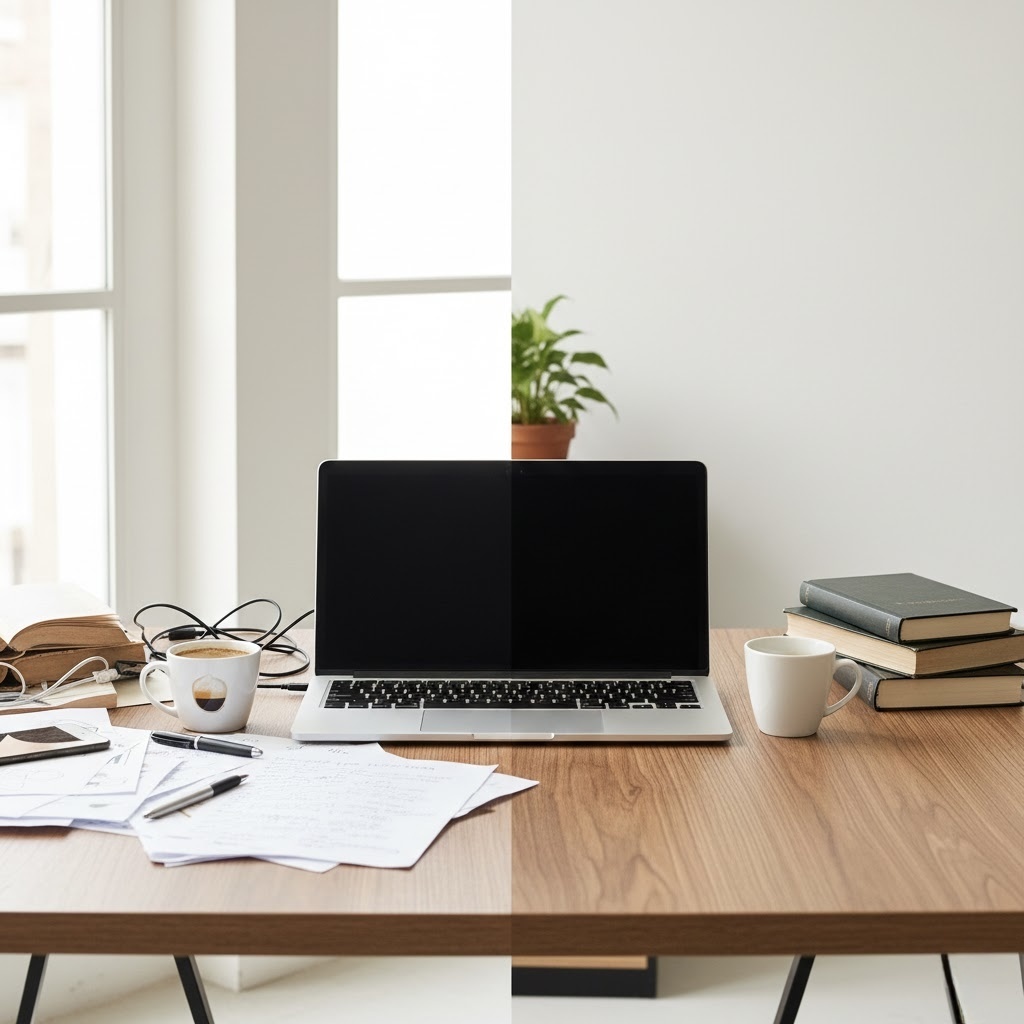 Мелкие вещи на столе, несложенная одежда, неаккуратные открытые полки. Это не бардак. Это — предметы в состоянии неопределённости. Каждая такая вещь — микро-вопрос вашему мозгу: «Куда это? Зачем это? Что с этим делать?». Они создают фоновый когнитивный шум, который мешает расслабиться глазам. Решение не в гигантской уборке, а в присвоении статуса: «Эти бумаги — на архив», «Эта чашка — на кухню». Уберите с открытых поверхностей всё, что не несёт радости или функции прямо сейчас. 🌬️ 2. Воздушный вампир: тяжёлое дыхание техники