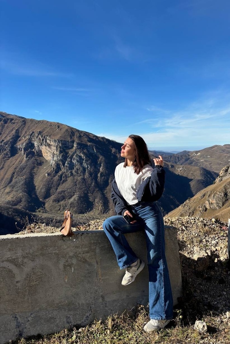 От Грозного мы ехали часа 2,5–3 с небольшими остановками в разных местах. Уже у подножья меня охватил восторг, и бешено билось сердечко, при подъеме от невероятных видов я не смогла сдержать слëз. Это сказочное место, бескрайний простор, мощь и грация, а рядом небеса. Невозможно налюбоваться, впервые столкнулась с отрицанием реальности происходящего. Не передать словами, эмоции били через край, это стоит увидеть, прожить, продышать!