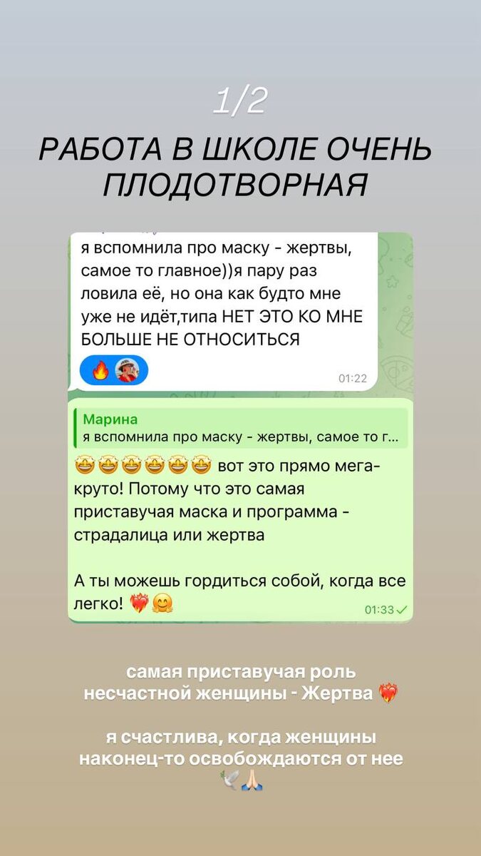 ШКОЛА ЖИЗНИ ПО-ЖЕНСКИ - пространство 100% меняющее твою жизнь к лучшему 🙏🏻🕊️ даже предобучение такое продуктивное. Восхищаюсь и горжусь женщинами, которые выбирают ментальные трансформации и возвращение к своей Женщине , к себе настоящей ❤️🔥 И Благословляю каждую прожить опыт перехода на ветку реальности, где всё легко, ясно и вы очень счастливы 😊 то есть к жизни по-женски ————— еще 3 дня ты можешь присоединиться к этой группе по текущей стоимости 220.000₽ за год работы с собой с моим личным сопровождением. Не изменить и не улучшить жизнь - шансов нет при твоей включенности в процессы, которые имеются в школе жизни по-женски 💯