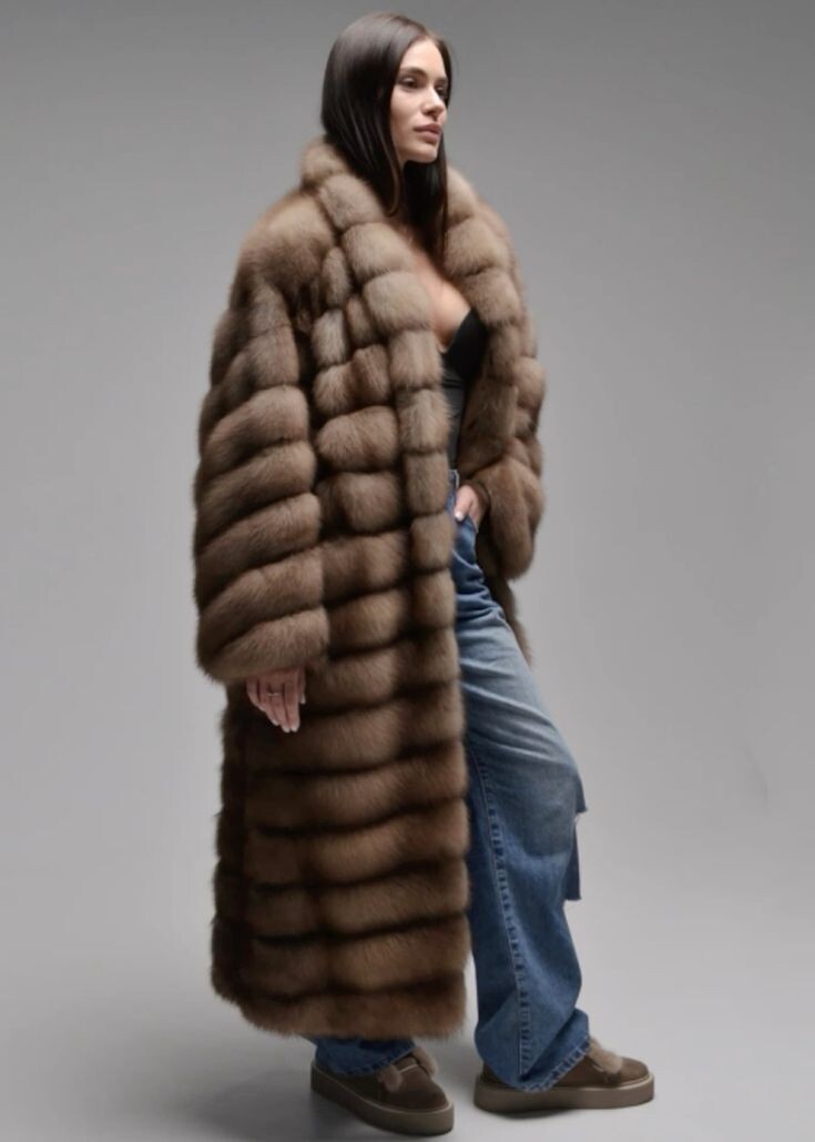 Когда-то поперечные полосы были способом сделать норку доступнее. И модель выстрелила: её носили буквально все. Массовость, как водится, убила эксклюзивность, и со временем такой крой стал ассоциироваться скорее с бюджетными вариантами, чем с роскошью.