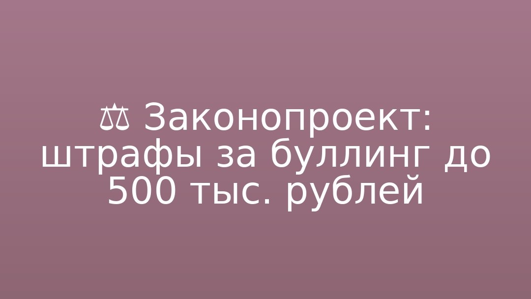 Законопроект предлагает ввести в КоАП РФ статью о наказании за систематическое унижение чести и достоинства граждан (травлю). Под травлей понимаются повторяющиеся действия в неприличной или аморальной форме. Штрафы: для граждан — 10–50 тыс. руб., для должностных лиц — 100–200 тыс. руб., для юрлиц — 100–500 тыс. руб. Авторы инициативы указывают, что 75% детей сталкивались с травлей в сети; за год показатель вырос на 15%.
