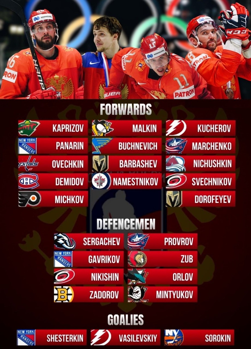 Состав сборной России на Олимпийских играх! В НХЛ прикинули состав сборной России по хоккею, который мог бы выступить на Олимпиаде, пригласи нас туда МОК. Но зачем, если проще обыграть условную Латвию, чем рисковать медалями с Россией Нападающие: Капризов — Малкин — Кучеров Панарин — Бучневич — Марченко Овечкин — Барбашев — Ничушкин Демидов — Наместников — Свечников Мичков — Кузнецов — Дорофеев Защитники: Сергачев — Проворов Гавриков — Зуб Никишин — Орлов Задоров — Минтюков Вратари: Шестеркин — Василевский Сорокин — Бобровский Боролись бы за Золото с таким составом? #хоккей #спорт