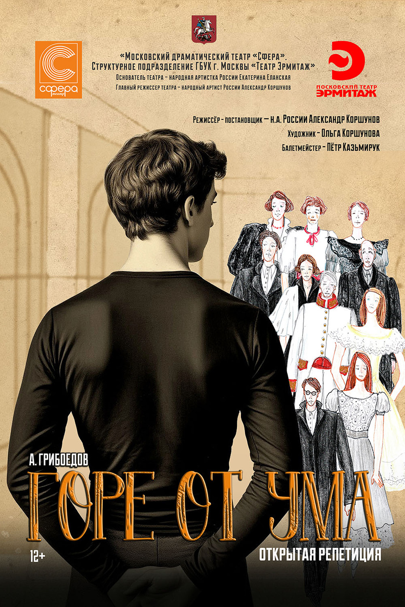 О спектакле «Горе от ума. Открытая репетиция» Московского драматического театра «Сфера». Премьера 26 сентября 2025 Комедию «Горе от ума» не зря считают бессмертной. Не знаю, придет ли когда-нибудь время «прекрасной России будущего», когда пьеса перестанет быть актуальной, очень бы хотелось дожить. Во всяком случае, сегодня сатира и боль Грибоедова современны, а сценическая судьба его единственной пьесы завидна. Режиссер Александр Коршунов поставил спектакль-поединок. И поединок этот неравный. В первом действии Чацкий является обличителем, гневным и бескопромиссным. И вроде бы он прав, но зрительские симпатии явно на стороне Фамусова (блистательный Дмитрий Ячевский). Именно Фамусов, с его пониманием жизни, с его родительскими тревогами и едким насмешливым умом «переигрывает» Чацкого (Никита Спиридонов), который более напоминает шута, чем гневного обличителя. Фамусов - Дмитрий Ячевский. Фотография предоставлена пресс-службой театра Второе действие все расставляет по своим местам: пе