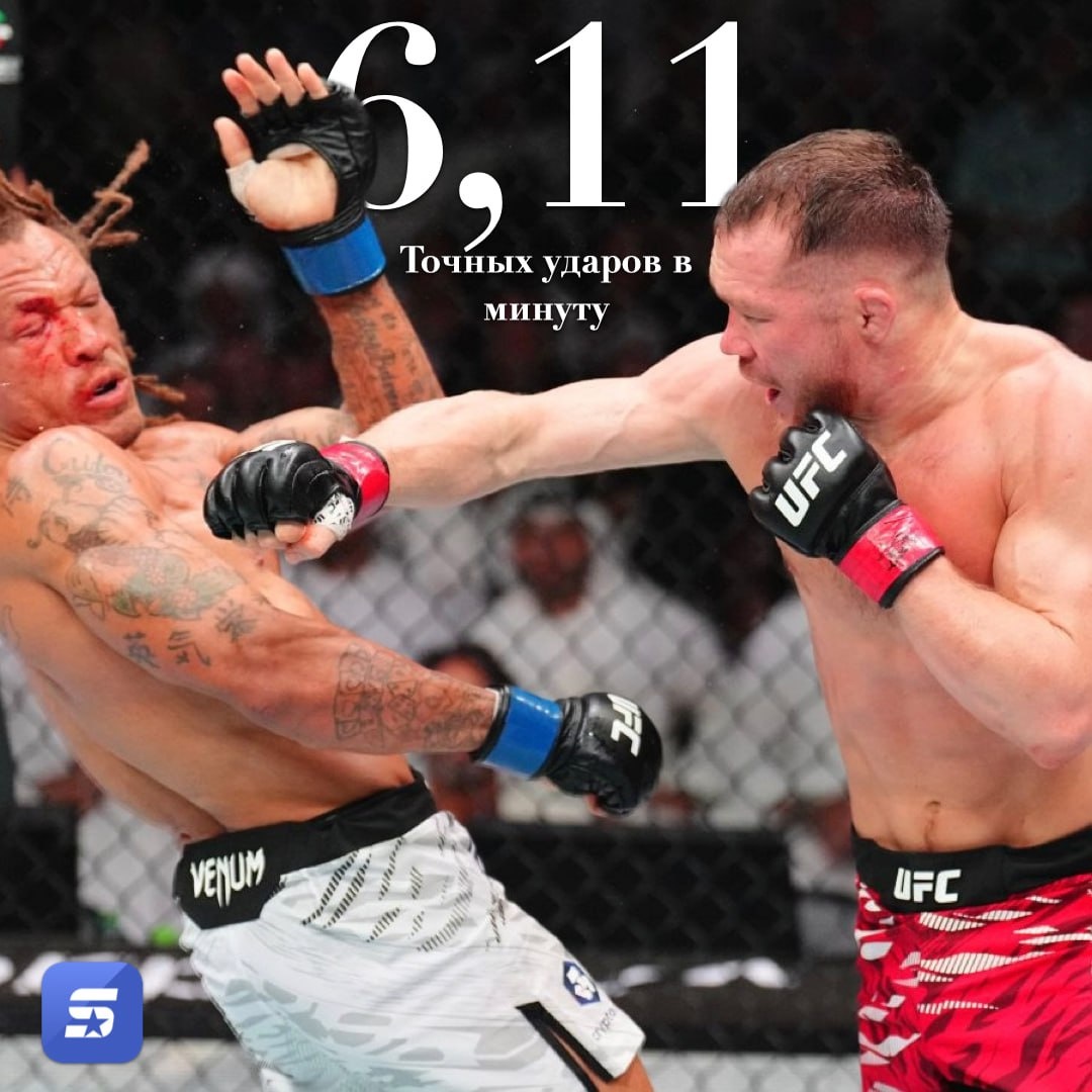 Пётр Ян может ответить Мерабу точностью и эффективностью. Он наносит 6,11 значимых ударов в минуту — это на 0,33 удара больше, чем у Двалишвили. Но главное — точность: у Яна — 65%, у Мераба — 46%. Его ключевой шанс — наносить более весомый урон и надеяться, что судьи оценят качество ударов выше, чем воздухорезы и броски «ради бросков» у Мераба #UFС323