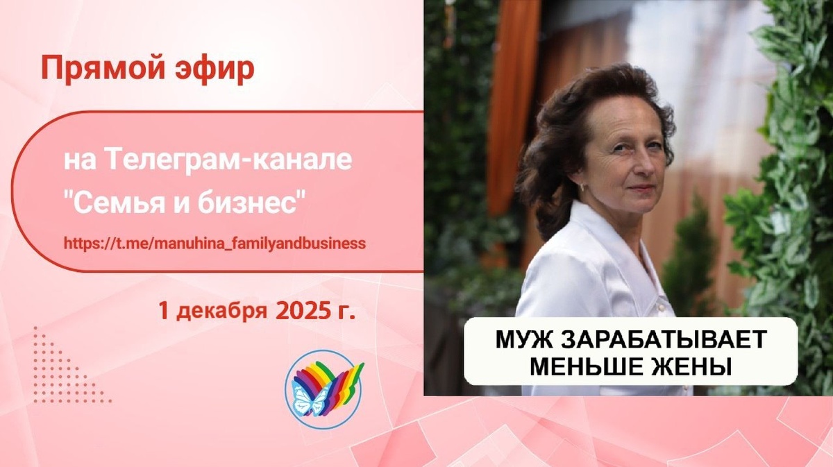 Запись прямого эфира от 1 декабря на канале «Семья и Бизнес»: Муж зарабатывает меньше жены Эта ситуация становится все более частой причиной обращения к семейному психологу. Насколько она нова? Почему ранее не была столь заметна? Что делает ее актуально значимой в наше время? Как относятся к ней сами мужчины? А женщины? Есть ли семьи, где такой расклад сил в отношении доходов семьи проблемой не является? Смотрите ответы на эти вопросы в записи эфира, делитесь вашим мнением, оставляйте комментарии: https://rutube.ru/video/56cde7e5bf1ec690b3a9166013185700/